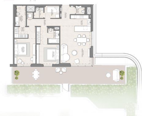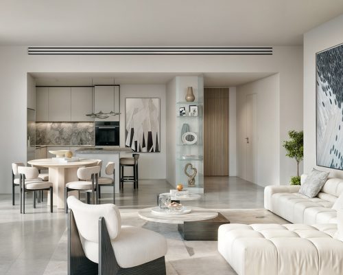 Les agencements intelligemment pensés offrent des espaces généreux et des finitions haut de gamme, avec de grandes baies vitrées et des balcons permettant une transition fluide entre intérieur et extérieur. Chaque appartement est conçu pour garantir confort et intimité, tout en maximisant la lumière naturelle et les panoramas.